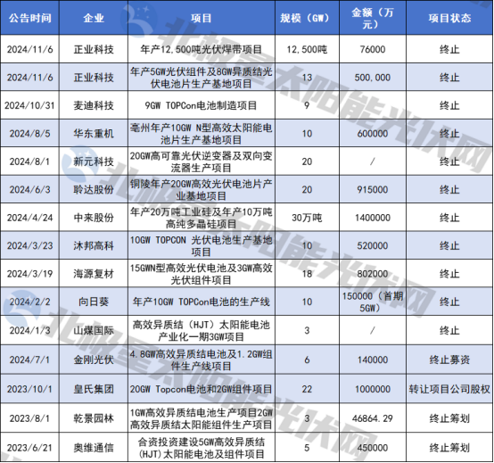 行至當下,相比前兩年的瘋狂擴產(chǎn),項目延期/終止詞條正席卷當下光伏市場(chǎng)。據統計,2023年以來(lái),共14家企業(yè)官宣終止光伏制造項目,均為清一色跨界選手,終止的項目建設規模近150GW、投資規模達到700億元左右,包括正業(yè)科技、麥迪科技、華東重機、向日葵、皇氏集團……而對于跨界選手而言,項目的終止,也意味著(zhù)跨界事業(yè)的落幕。